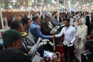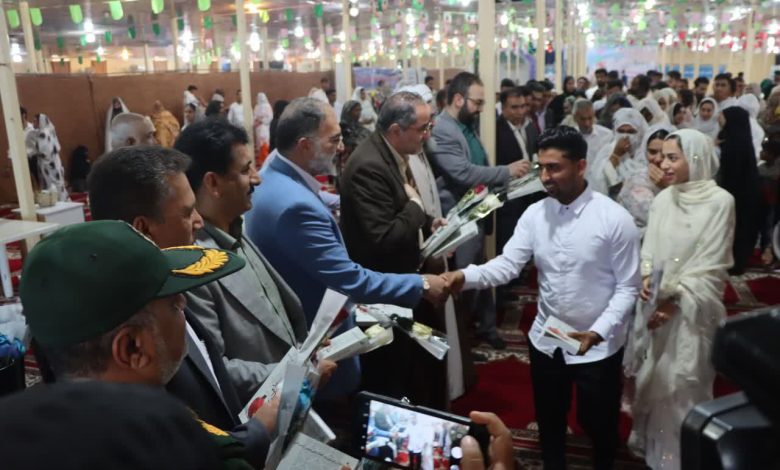 آئین ازدواج 100 زوج جوان قشمی با حضور دکتر محمدحسینی فرماندار شهرستان قشم، امام جمعه شهرستان، مدیرعامل سازمان منطقه آزاد و جمعی از مسئولان برگزار شد.